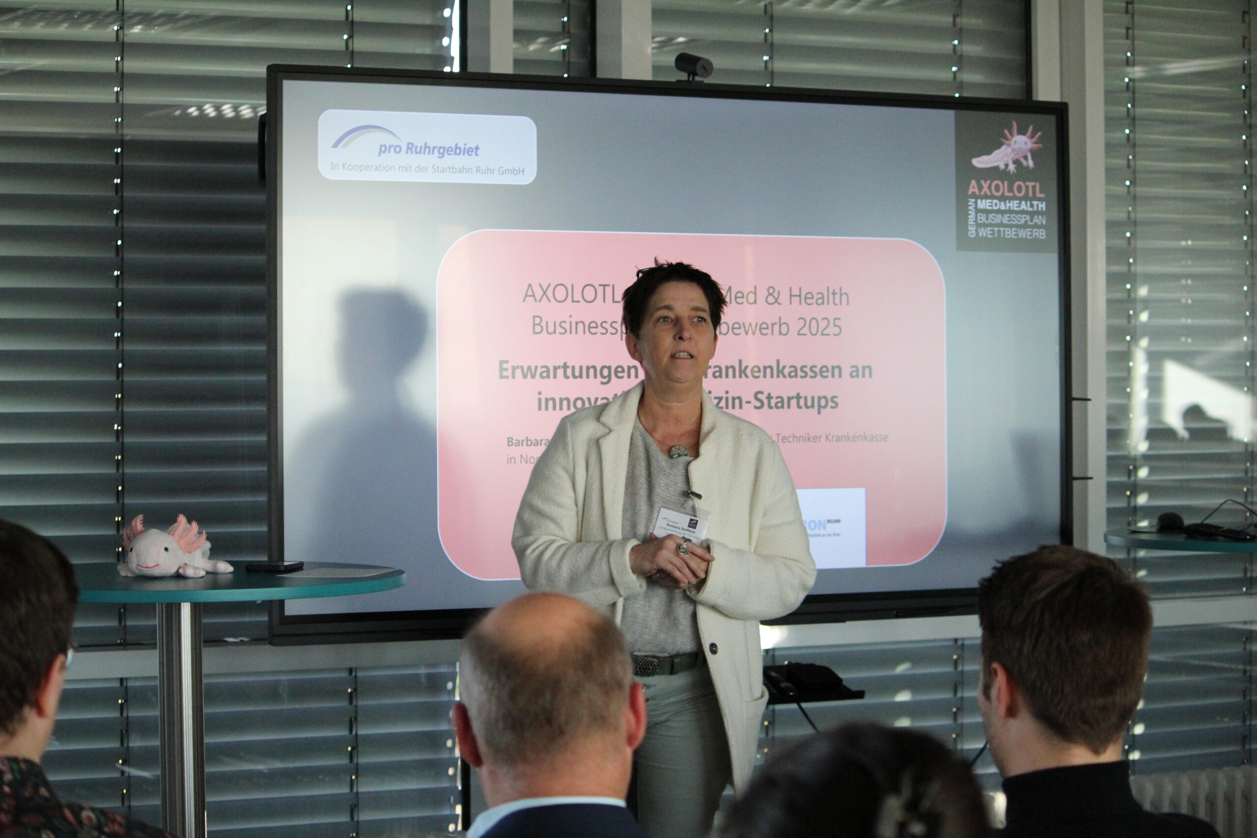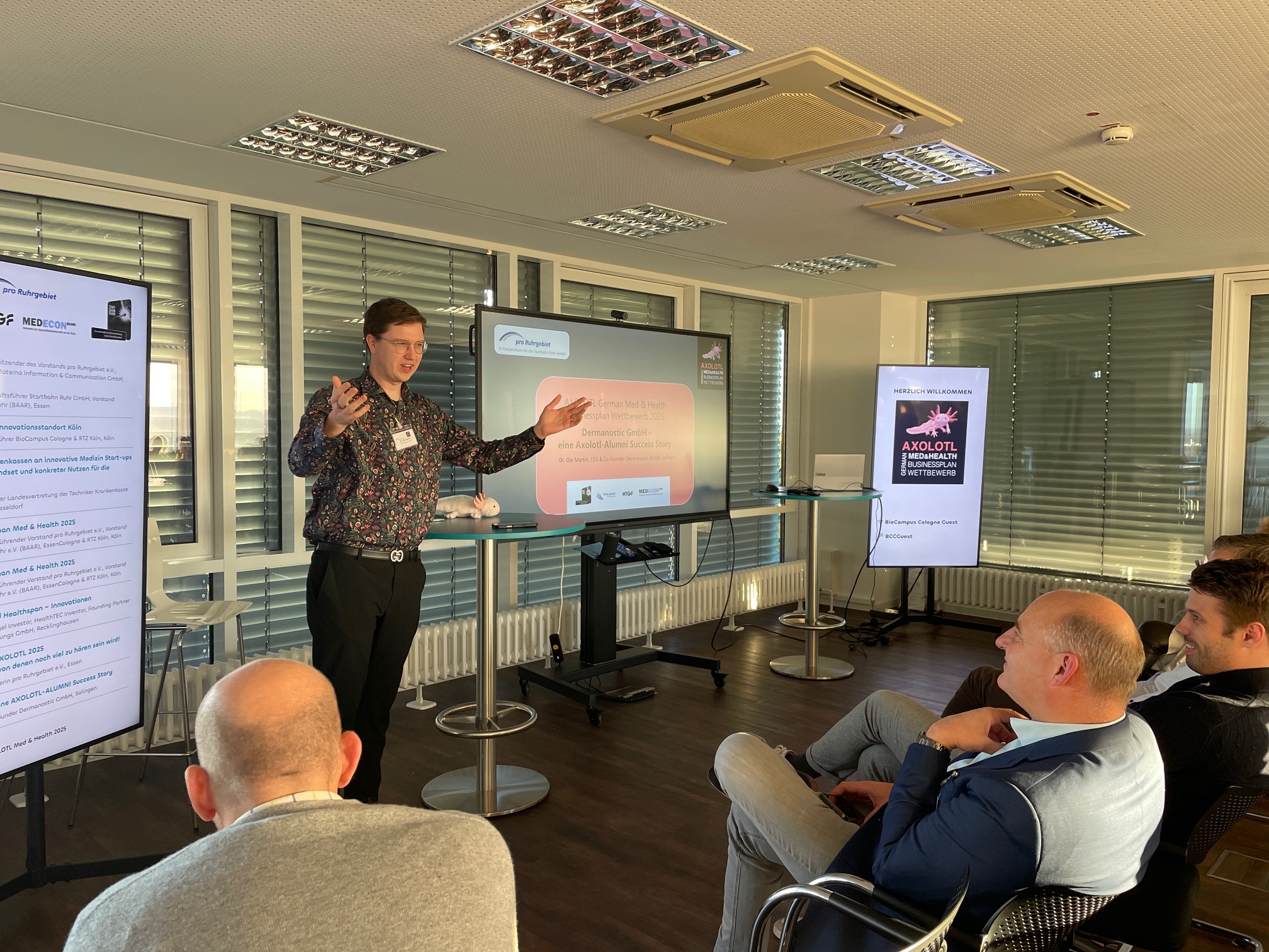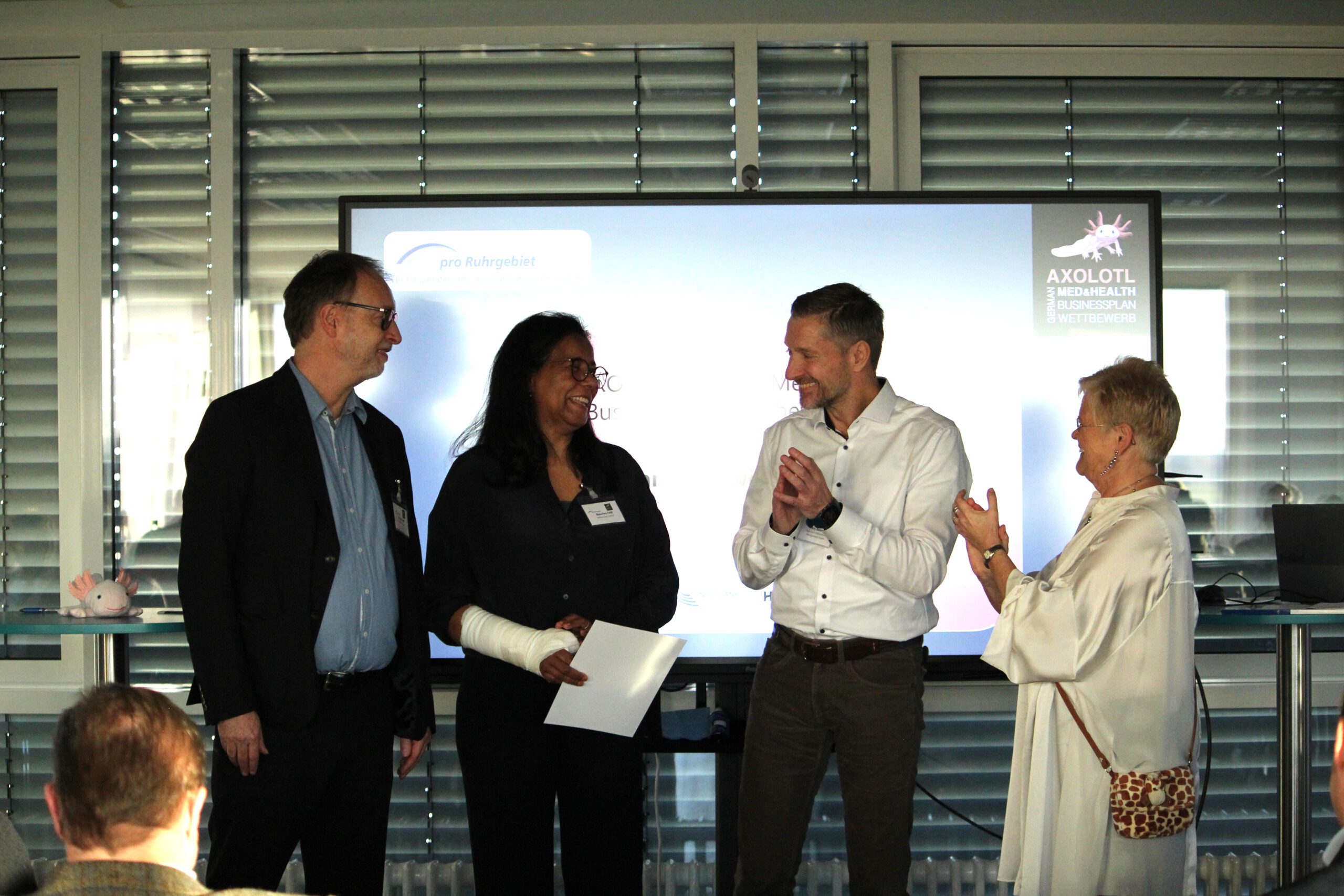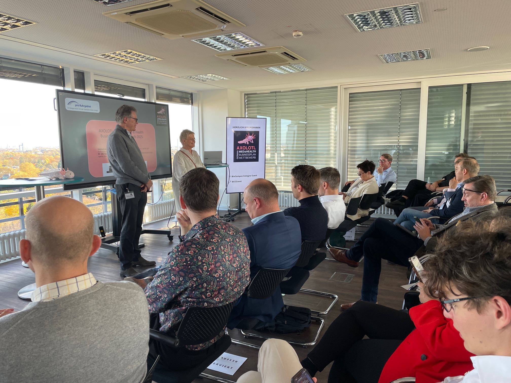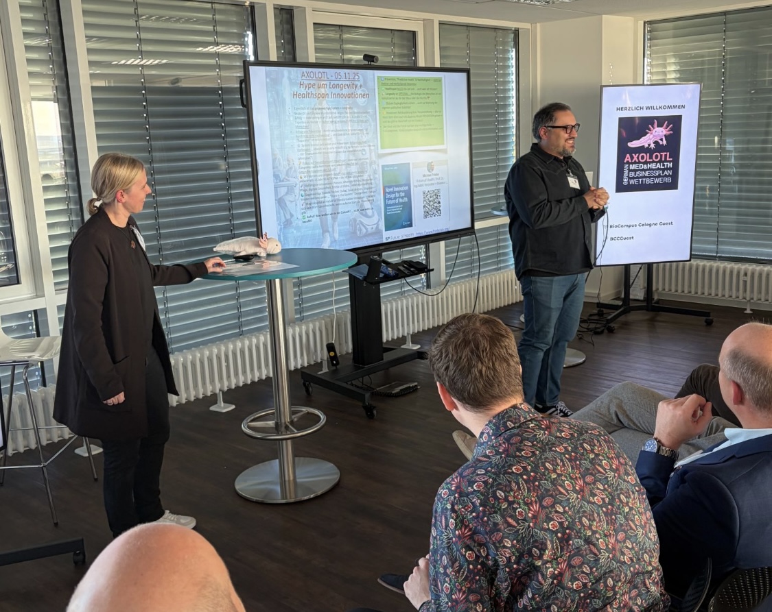 Am 5. November 2025 war es wieder soweit: Im Zeichen von Innovation, Mut und Unternehmergeist wurden aus der Top Ten des bundesweiten AXOLOTL Med & Health Businessplan-Wettbewerbs die drei besten Teams durch eine Jury ermittelt. Die Urkunden mit den Platzierungen wurden auf der „belle étage“ im 11. Stock des BioCampus Cologne vergeben.
