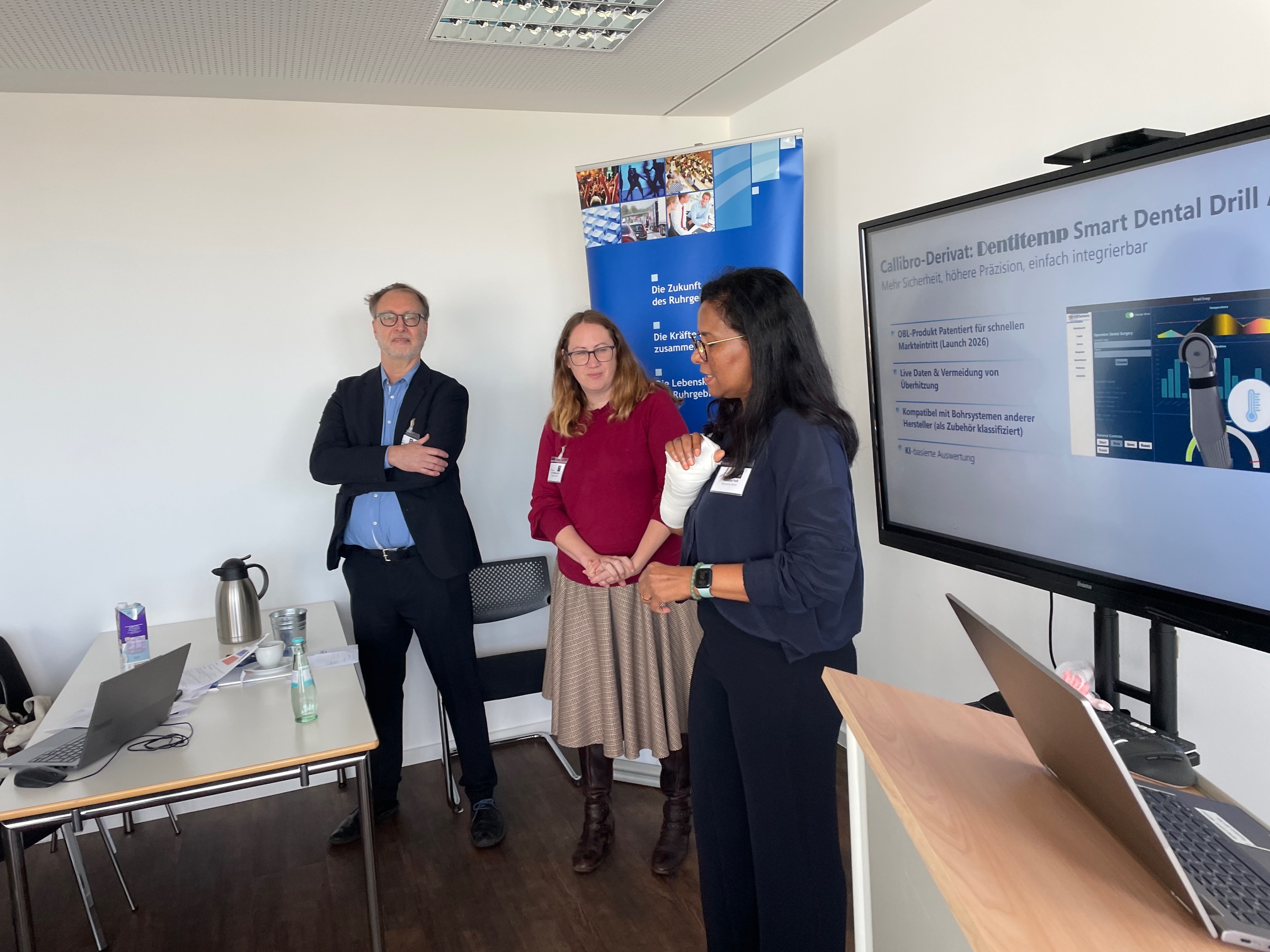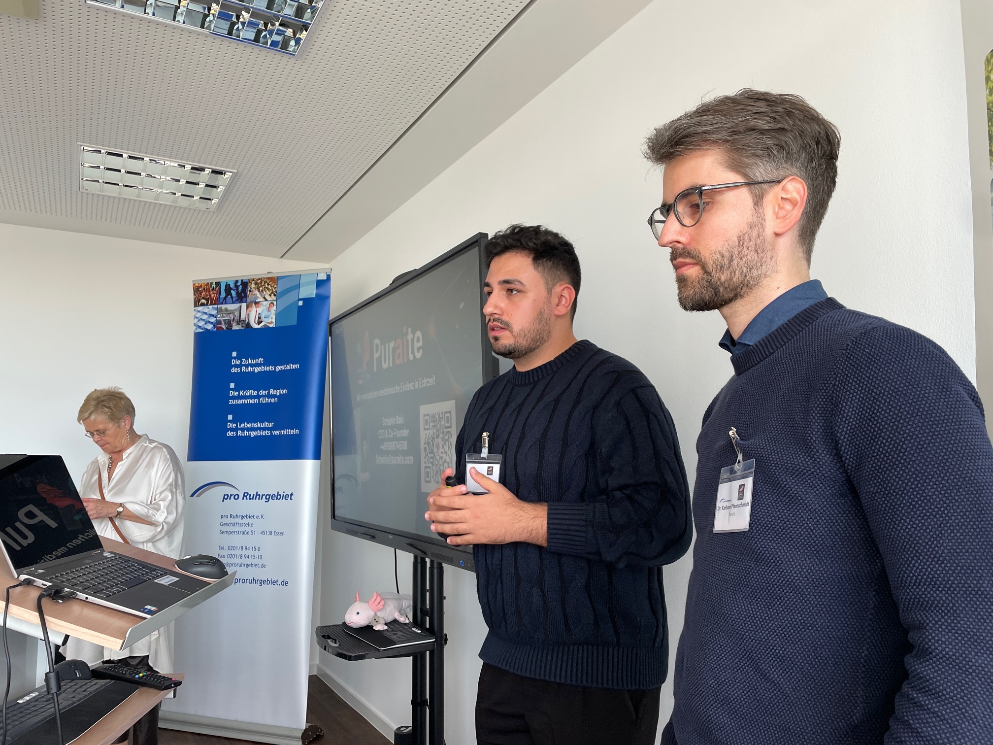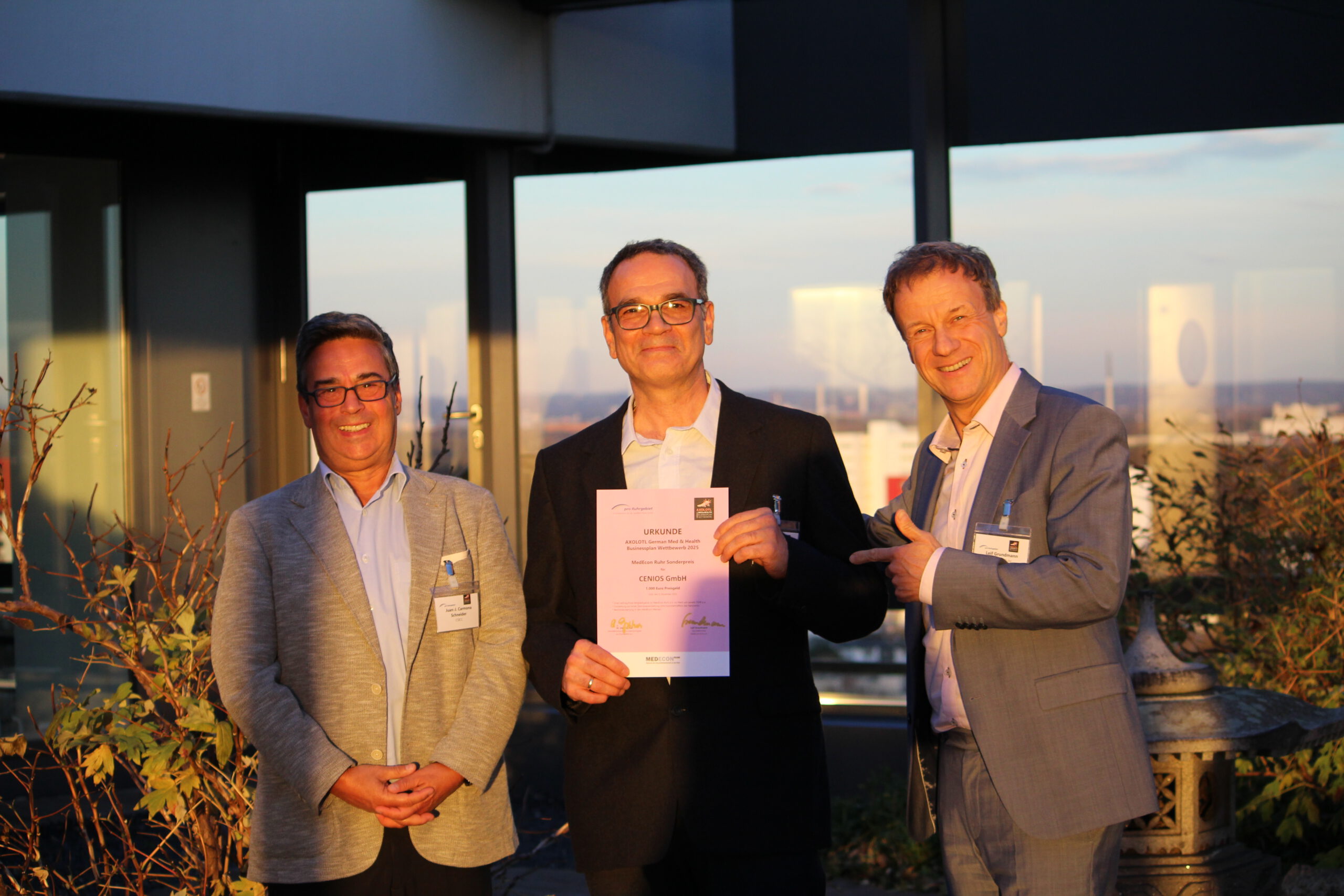 Gratulieren darf man auch dem Unternehmen Cenios GmbH (https://cenios.de/) aus Bottrop. Dr. Mohammad Salehi und sein Team entwickeln und produzieren eine quantitative Point-of-Care-Testing Technologie zur Vor-Ort-Analyse von Wirkstoffen wie Toxinen, Antibiotika und Zyostatitka – insbesondere in der Lebensmittelindustrie. Das Team erhielt aus den Händen von Geschäftsführer Leif Grundmann den MedEcon Ruhr Sonderpreis, dotiert mit 1.000 Euro.